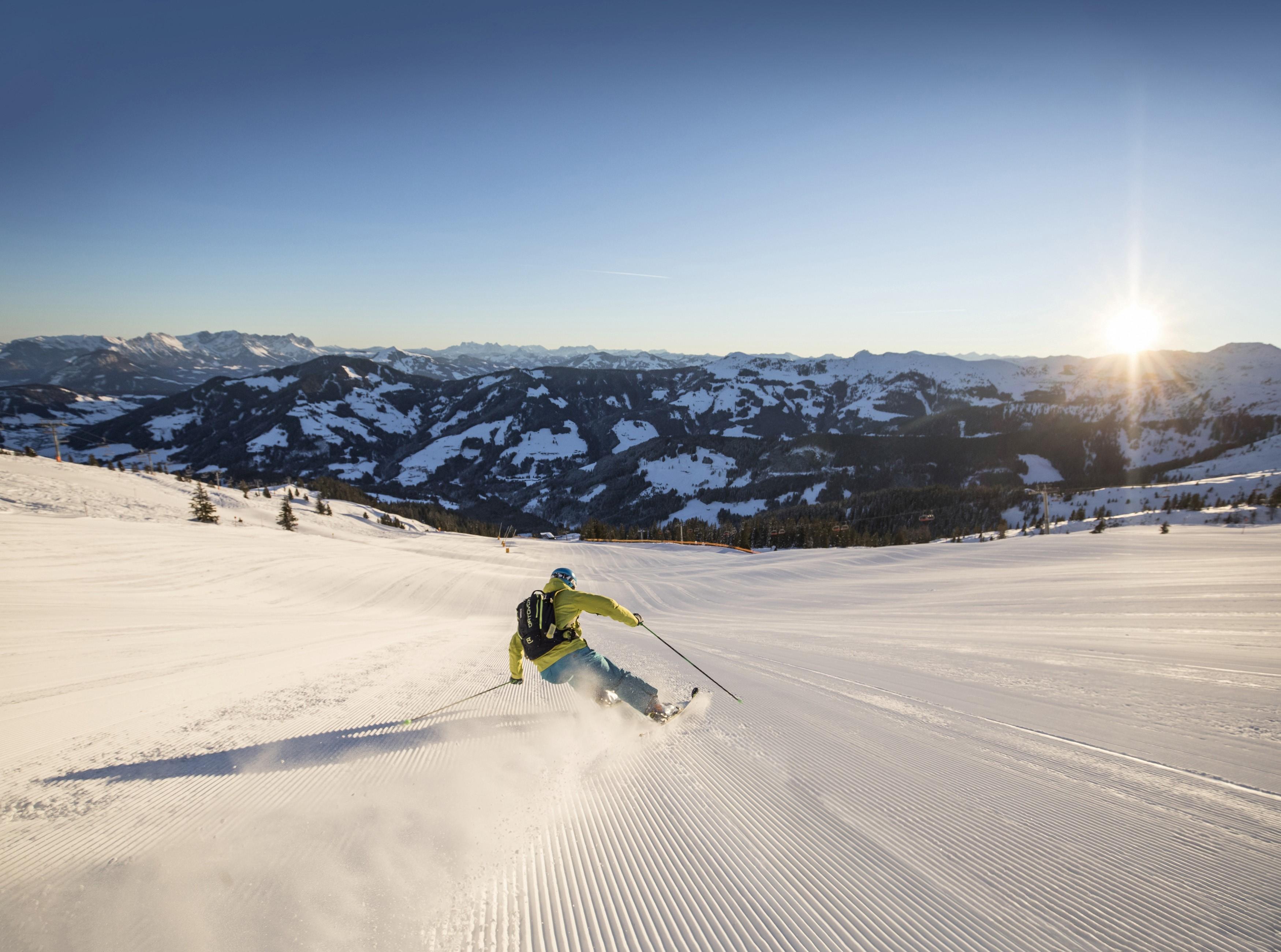 Just a short bus ride away, fast lifts whisk you up the mountain into the heart of the Ski Juwel region, jam-packed full of wooded red runs and silky smooth blues.